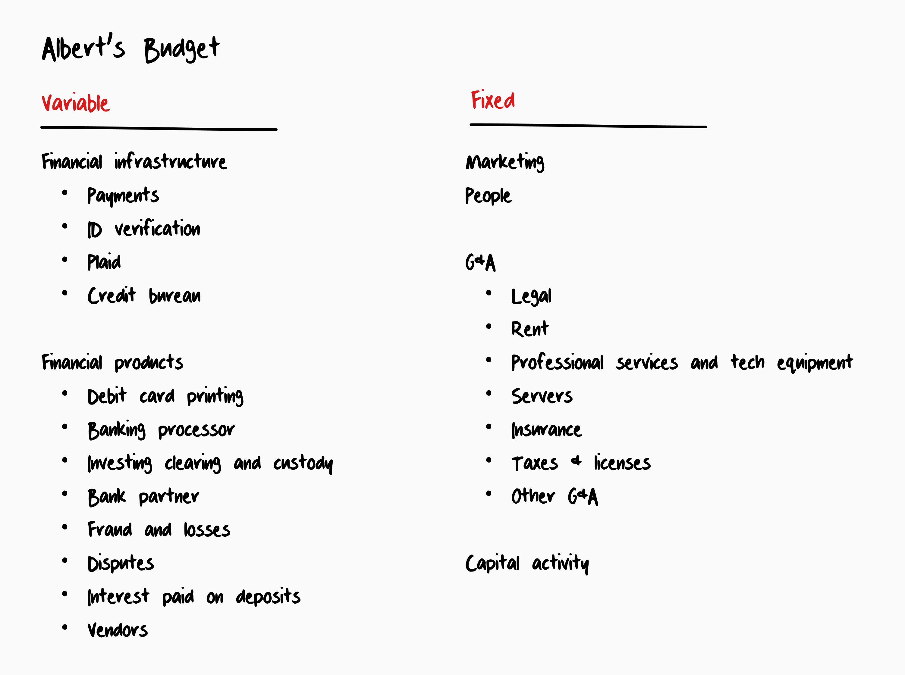 I've written about Albert's path from cash burn to profit a few times. Many things contributed to the business's transformation, but none more than simplifying the budget to fit on one sheet of paper.